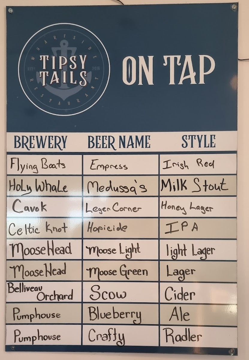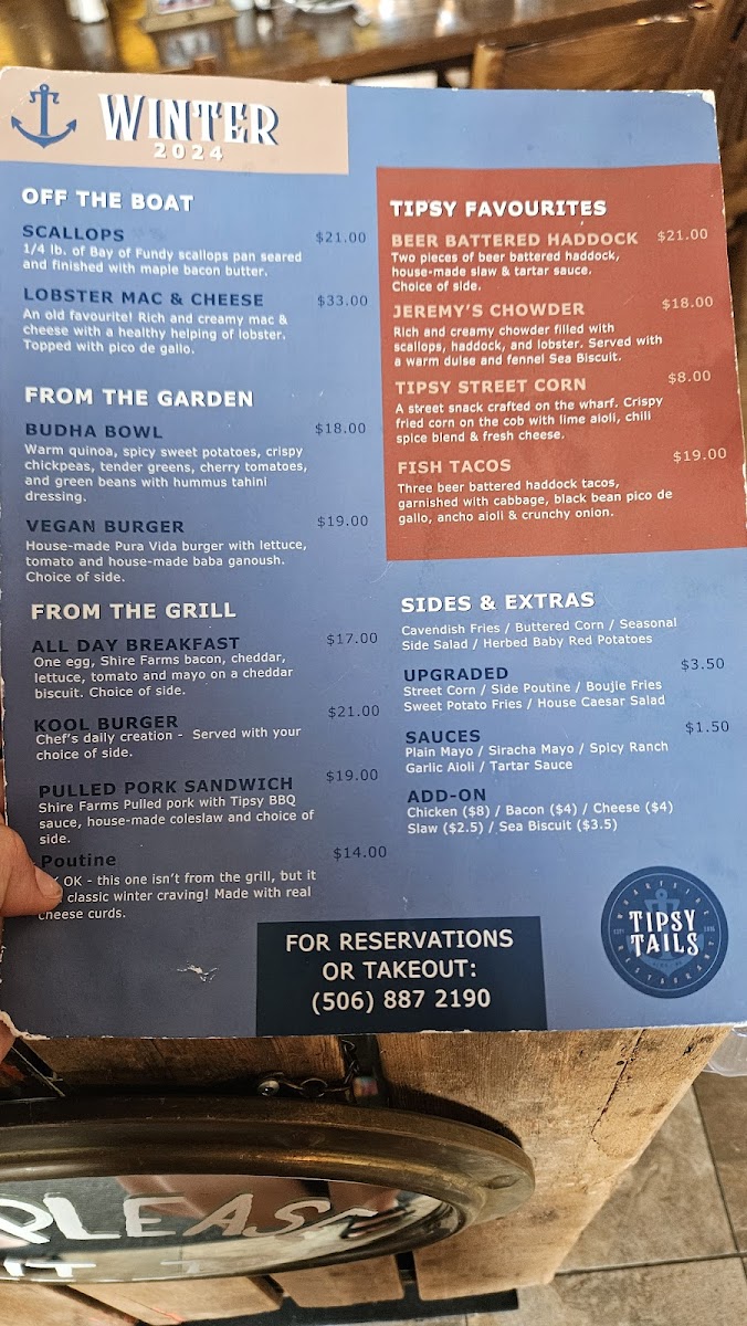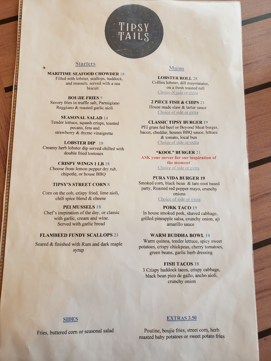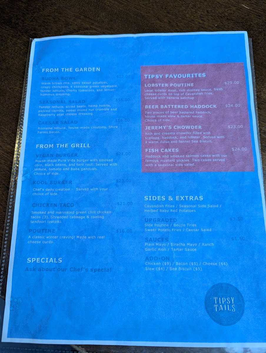 Whether you’re settling in on the patio overlooking the fishing harbour or enjoying a cozy seat inside, the food pairs well with the laid-back oceanfront atmosphere. Start with Tipsy's Street Corn or Fish Tacos, then enjoy a main like the Beer Battered Haddock or Braised Shortribs, complemented by an array of local beers or well-crafted cocktails. Seasonal salads and sides like Sweet Potato Fries add fresh balance to the menu.
