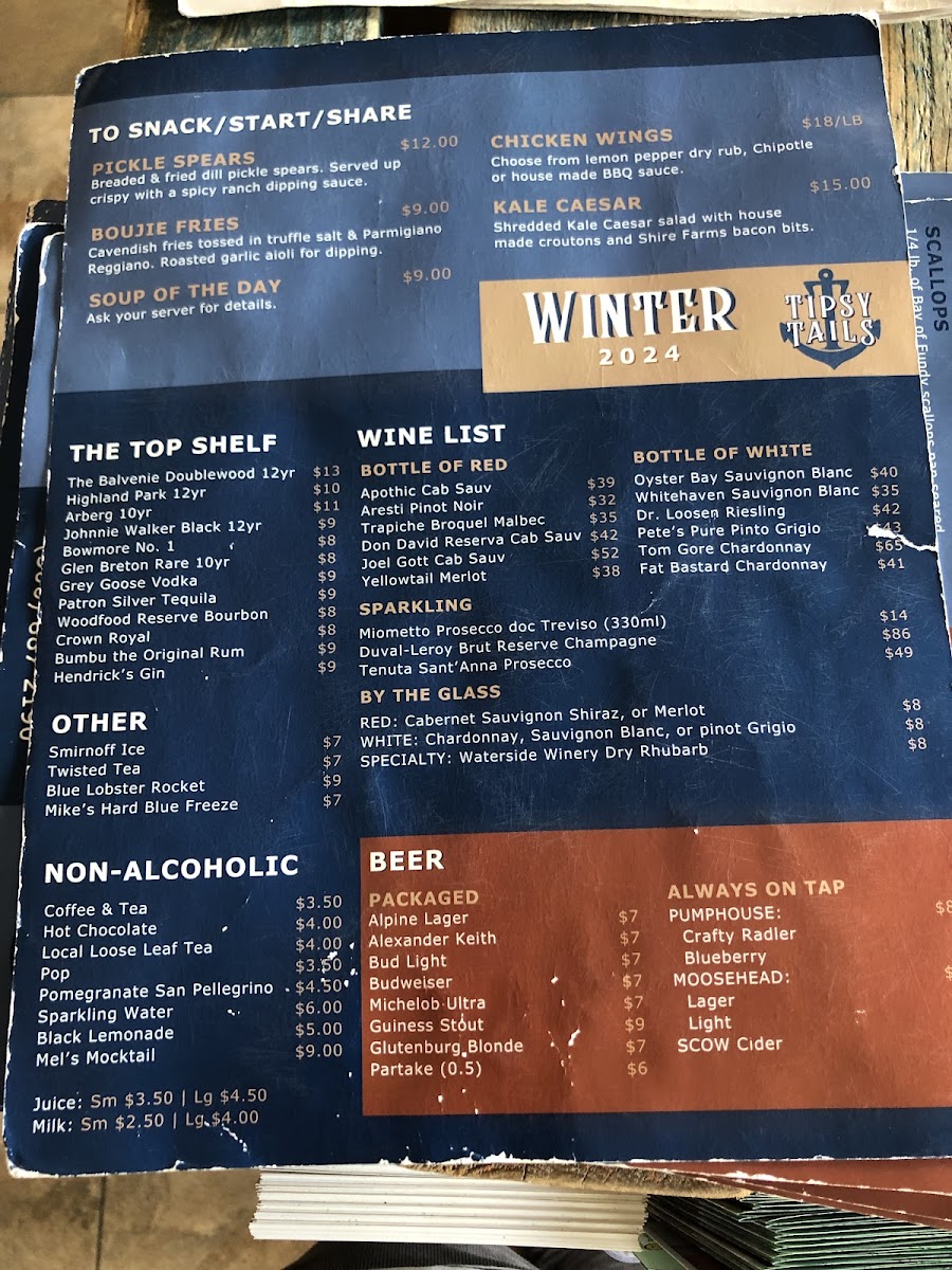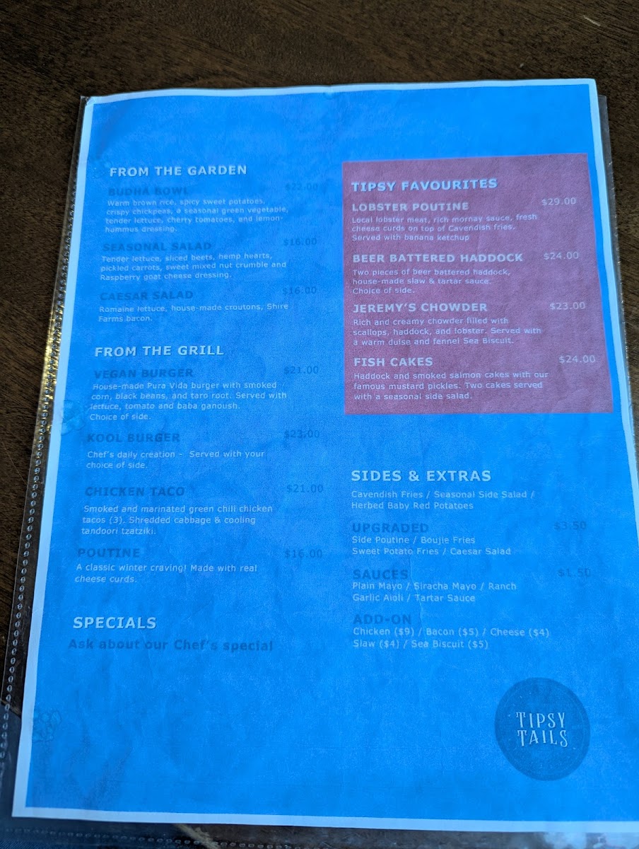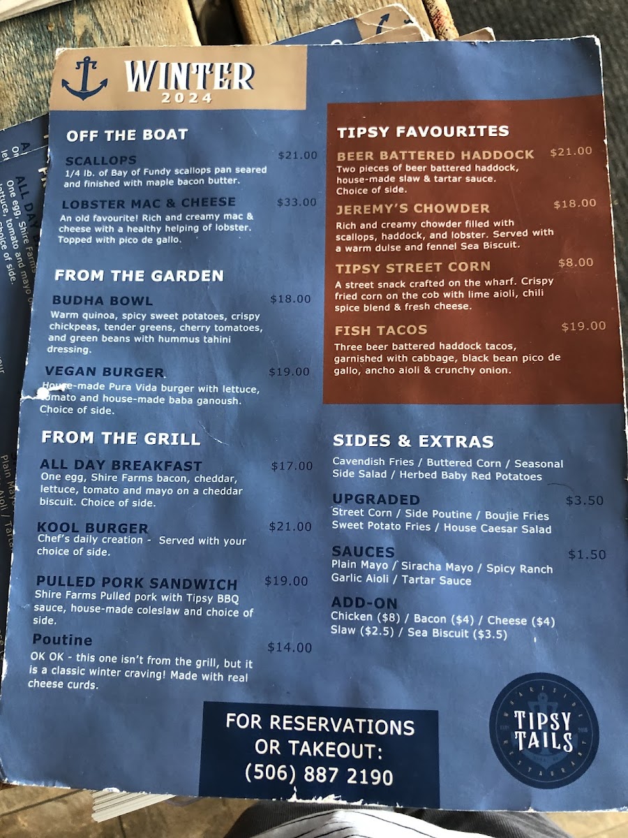 Whether you’re settling in on the patio overlooking the fishing harbour or enjoying a cozy seat inside, the food pairs well with the laid-back oceanfront atmosphere. Start with Tipsy's Street Corn or Fish Tacos, then enjoy a main like the Beer Battered Haddock or Braised Shortribs, complemented by an array of local beers or well-crafted cocktails. Seasonal salads and sides like Sweet Potato Fries add fresh balance to the menu.
